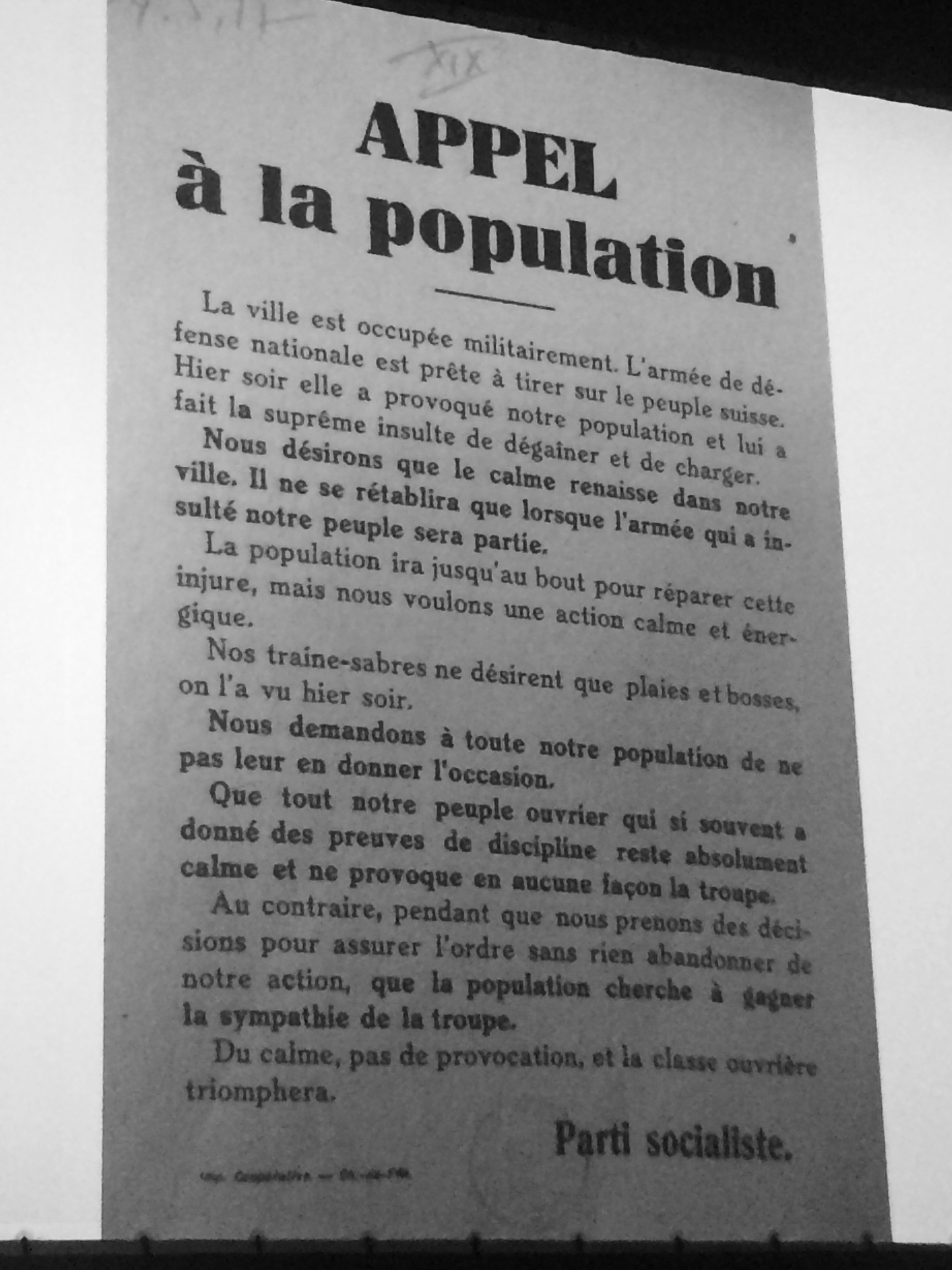 Conférence de M. Marc Perrenoud à l'occasion du 100e anniversaire de l'occupation de la ville de La Chaux-de-Fonds par l'armée suisse.